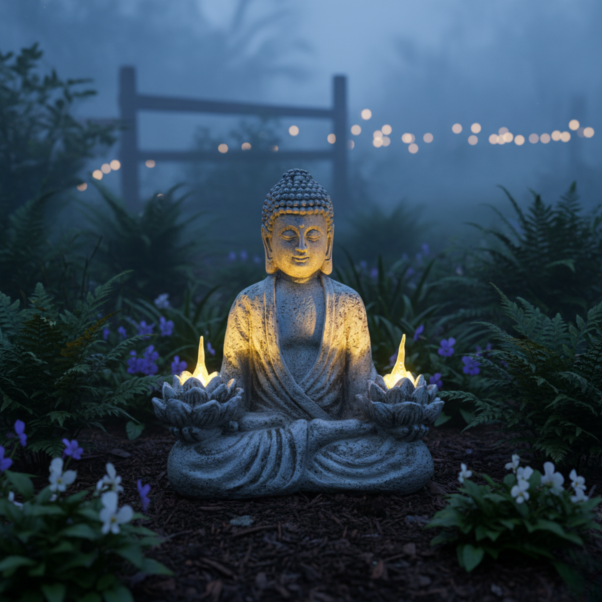 Trasforma ogni spazio in un’oasi di pace con SerenitàBuddha, la statua decorativa che unisce design raffinato e spiritualità zen. Realizzata con dettagli eleganti e accompagnata da un loto luminoso, questa scultura diffonde armonia e serenità sia in giardino che negli interni della tua casa. Perfetta come elemento d’arredo, come idea regalo o per creare atmosfere meditative uniche.